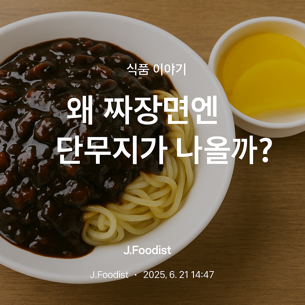 짜장면과 단무지의 조합은 단순한 맛의 궁합이 아니다. 그것은 한국 현대 외식문화, 한중일 역사, 경제성과 효율성, 식재료 유통의 흐름이 만들어낸 ‘문화적 퓨전’이다. 지금도 배달앱으로 짜장면을 시키면 단무지가 빠지면 허전함을 느끼는 우리의 감각 속엔, 과거의 기억과 입맛이 모두 녹아 있다.