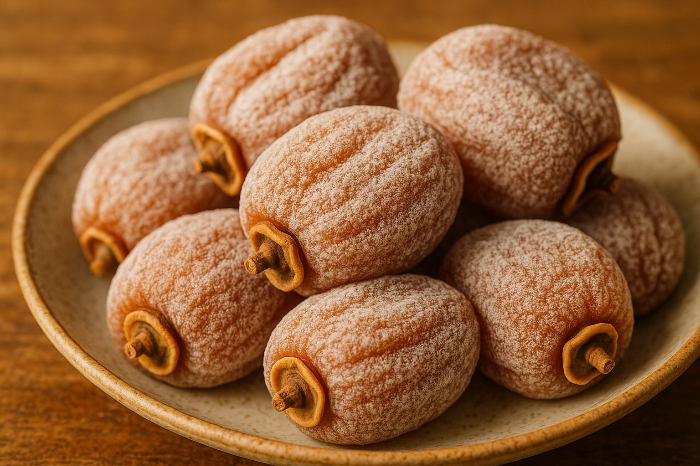 곶감은 감을 수확해 껍질을 벗기고 일정 기간 건조·숙성시켜 만듭니다. 이 과정에서 수분이 빠져나가고 감 속의 당 성분이 농축되면서 당도가 크게 올라갑니다. 감 속의 전분은 효소 작용에 의해 포도당·과당 같은 단순당으로 분해되고, 일부는 말토오스 형태로 전환됩니다. 숙성이 진행될수록 이 당이 표면으로 이동하여 결정화되며, 우리가 보는 하얀 가루로 나타나는 것이죠.