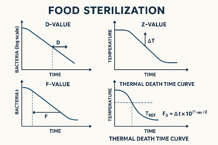 식품 안전 관리에서 멸균은 핵심적인 공정입니다. 특히 통조림, 레토르트 식품처럼 장기 보관을 전제로 한 제품은 미생물 제어가 품질과 안전을 좌우합니다. 멸균 공정을 이해하려면 D값, Z값, F값, F0값 같은 지표와 함께 가열치사곡선 개념을 명확히 알아야 합니다. 이 지표들은 멸균의 정도를 정량적으로 표현해 주며, 식품 종류·포장 형태·목표 미생물에 따라 멸균 설계를 최적화하는 데 활용됩니다.