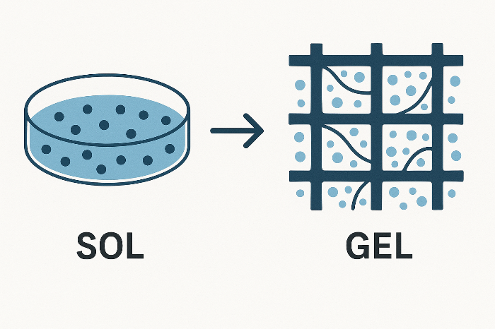 솔 → 젤 전이는 겔화(gelation)이라 하며, 열, pH, 이온, 효소 등에 의해 발생합니다.